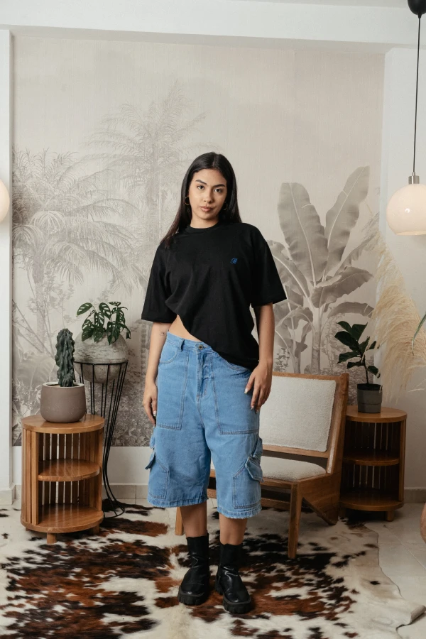 Camiseta oversize en tela 100% algodón, de tacto suave y caída relajada. Detalle de B bordada en blanco en el frente