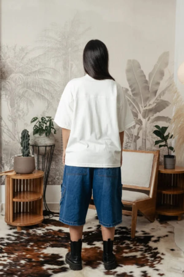 Camiseta box fit, confeccionada en tela 100% algodón de tacto suave. Detalle bordado al frente con borde azul e interior blanco.